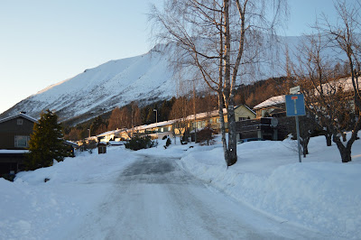 Eg merka at det vart kaldare etter kvart då eg gikk ein tur for ein times tid sidan. Eg hadde på meg broddar for sikkerheits skuld, men vegane, som først hadde smelta til sørpe og så frose til att, var ikkje gode å gå på. Det vart ingen fart over turen-ettersom eg også hadde kamera med og absolutt ikkje måtte dette.